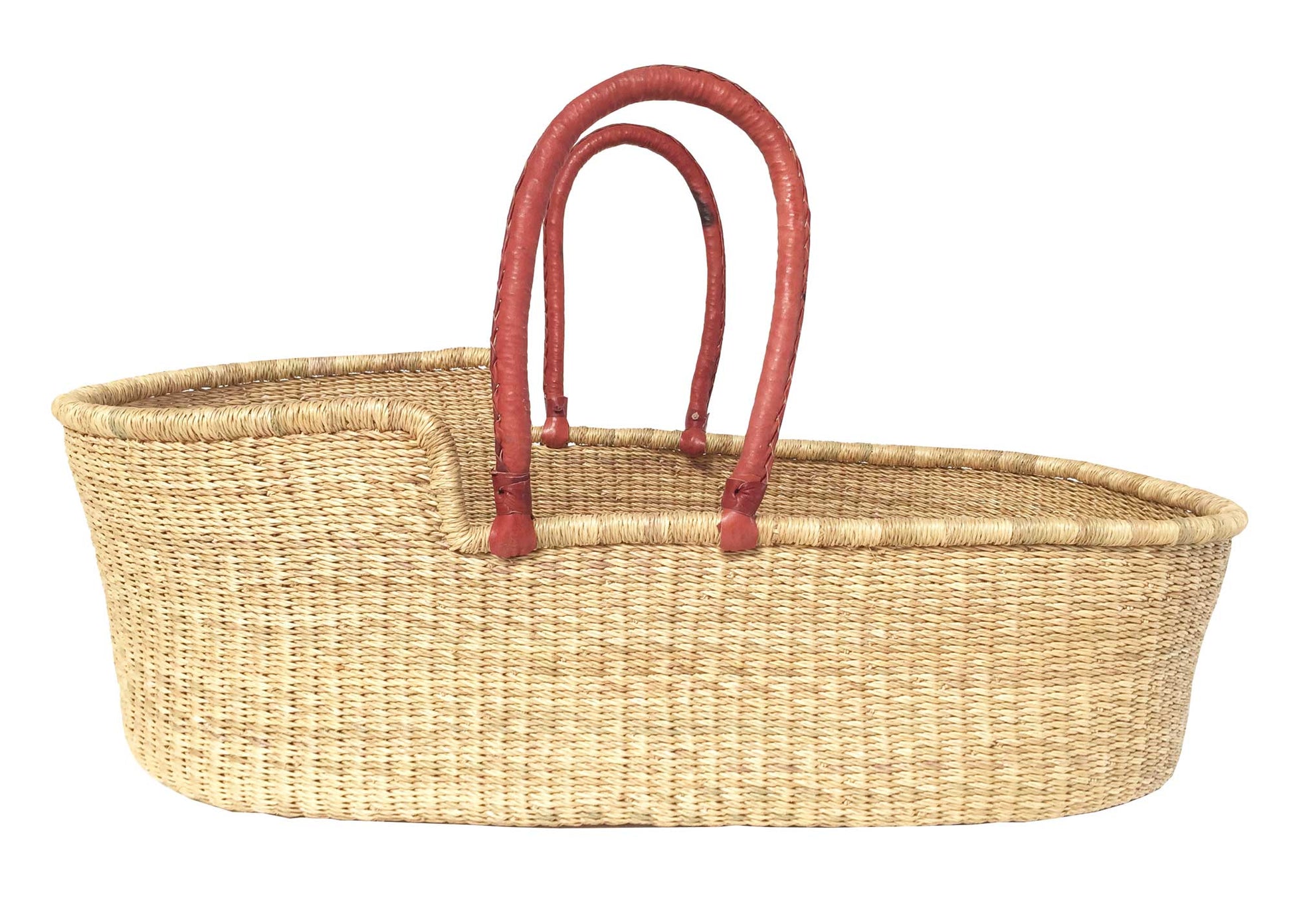 Straw handwoven Moses baskets are made in Ghana Africa. Made from all-natural straw, no chemicals, sprays or dyes are used in or on this basket.