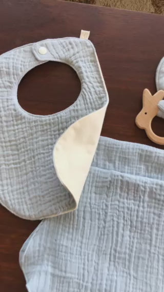 Our bibs are unique, made with organic cotton gauze with organic cotton double jersey backing that is waterproof! That's right, it won't leak through.