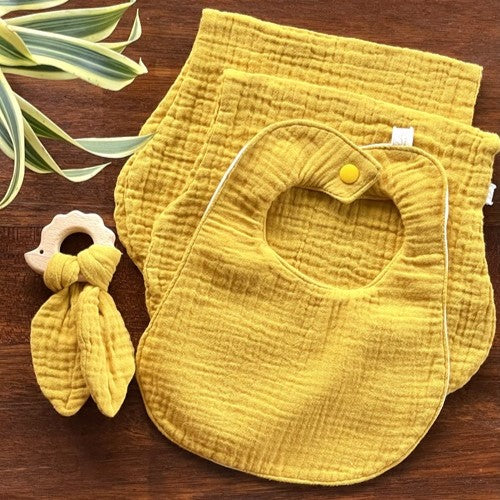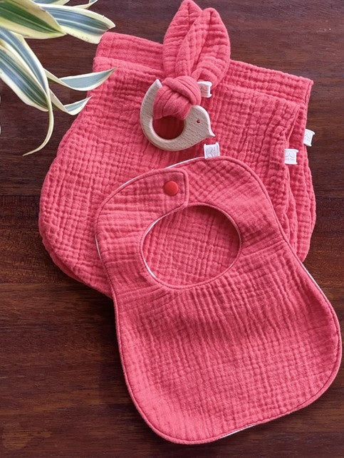 Wendy Anne Gift Set - Bib, Burp and Teether with Organic Cotton Gauze